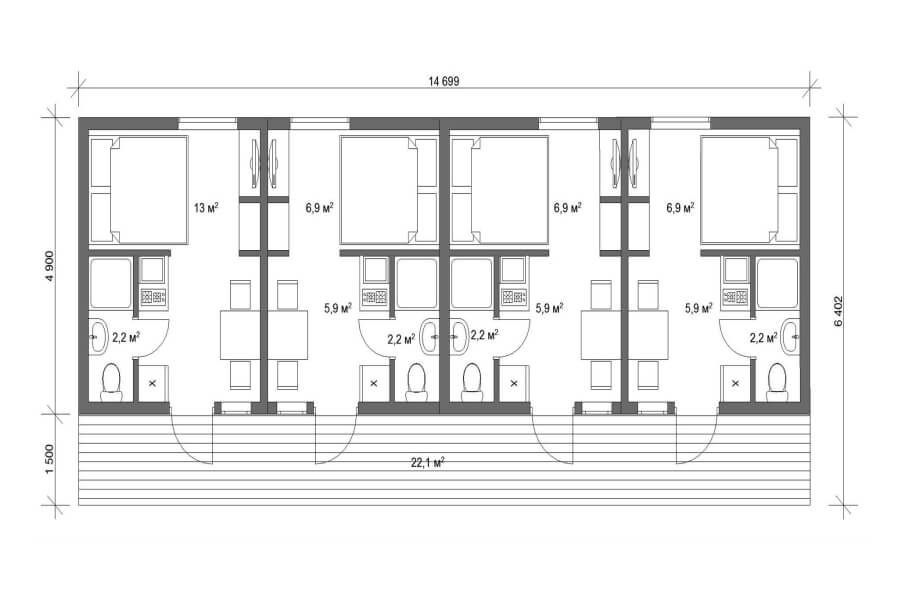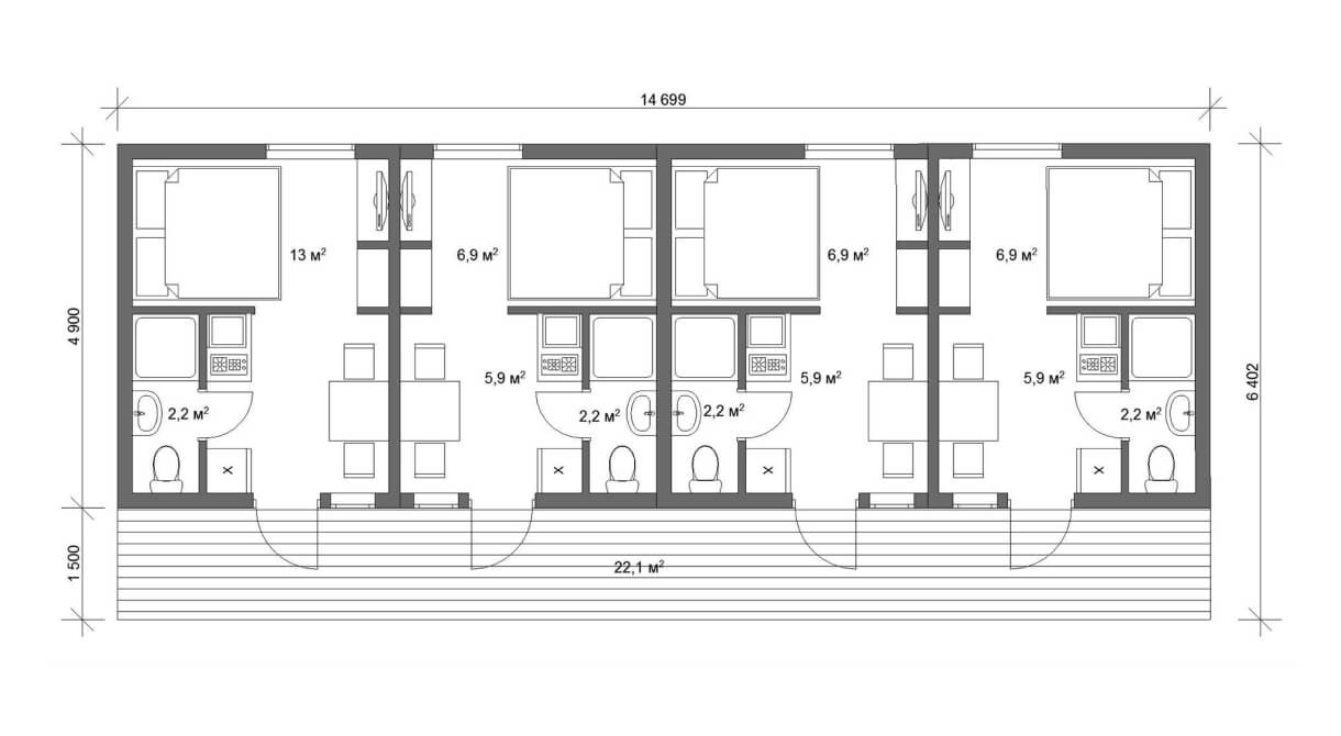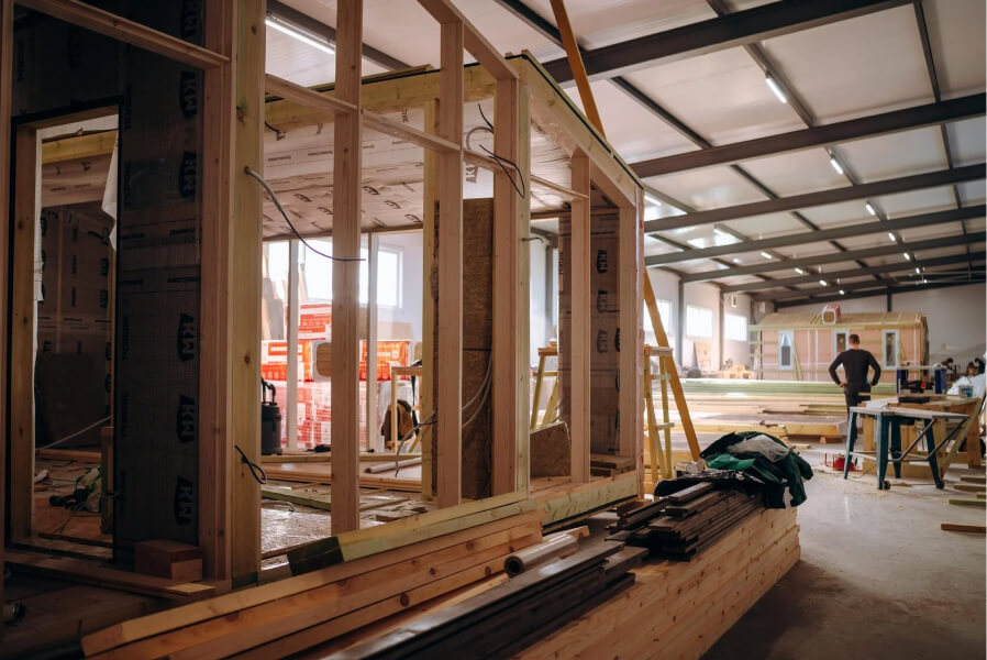 Прямо сейчас у нас есть 4 таких дома на производстве в разной степени готовности.